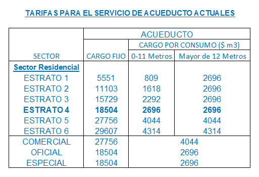 TARIFAS PARA EL SERVICIO DE ACUEDUCTO FEBRERO 2019